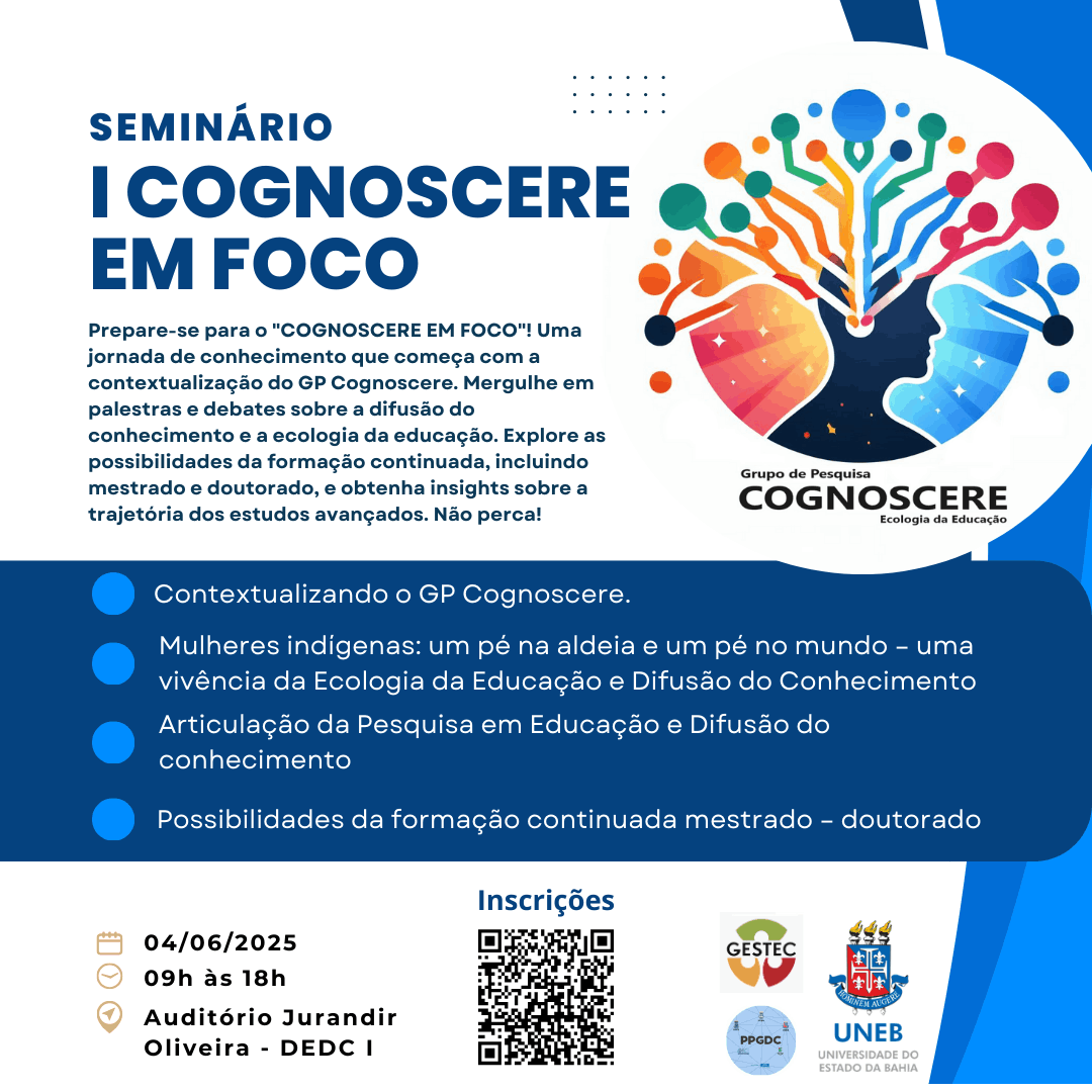 O evento COGNOSCERE EM FOCO é uma oportunidade para discutir e explorar temas relevantes relacionados à gestão, tecnologias e difusão do conhecimento, bem como os impactos curriculares nas universidades. Com uma programação rica e diversificada, o evento visa promover um diálogo enriquecedor entre pesquisadores, educadores e profissionais da área, contribuindo para o avanço do conhecimento e a implementação de práticas inovadoras na educação.